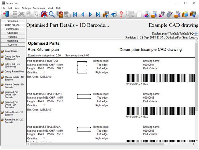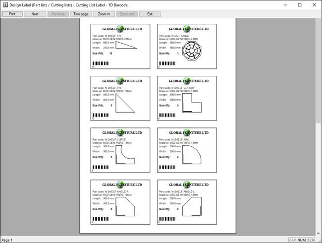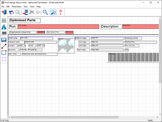 Our designer allows for the creation of either form or label designs taking data directly from the production job or from any of the data set up for part in the part database.
