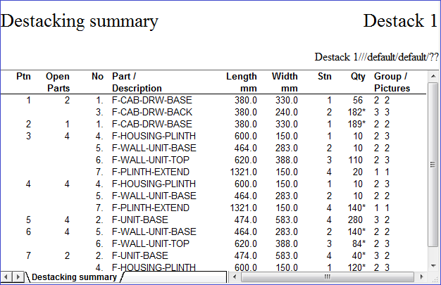 If using an information box in the part list to store a pallet group for each part this column shows the pallet group rather than the destacking picture