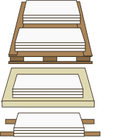 Destacking picture - A destacking picture describes how the part is stacked on the station. The part length and pallet/baseboard length are usually the longest sides but strictly speaking the part length is the item found in the 'Length' box in the part list and the pallet/baseboard length is the item found the 'Length' box in the destacking library. The program always show the pallet with the length edge horizontal across the page or screen.