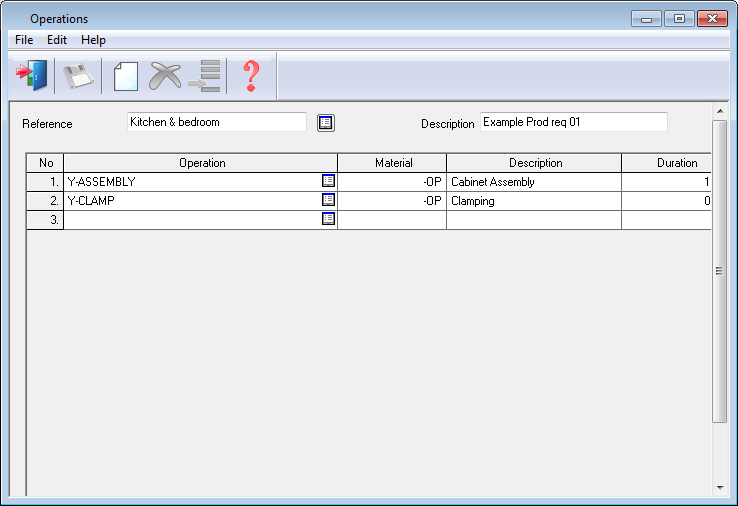 Operations are any operation on the product, such as, assembly, cleaning, packing, etc. Product operations are not used in the optimisation and are stored in a separate file on disk. Use this list as a record of the operations required or as a check list to manage the jobs in production.