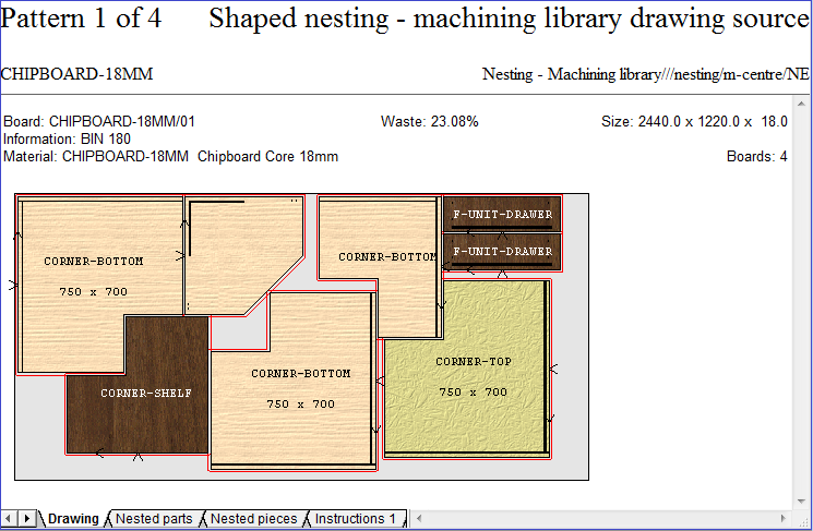 For Nesting each part can have an associated information box which defines the material picture to show for the part.