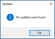 Special versions cannot be updated by hotfixes as these contain a limited number of executables: the program reports 'No updates were found' until a new full release is available.