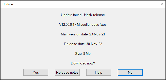 Select ‘Yes’ to close the program and start installing the update. If you chose not to install the update at this point, the program will issue a reminder when it next starts.