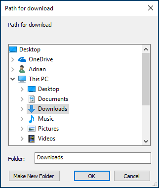 Select OK at the backup reminder dialog to select a destination for the download. The program defaults to the ‘Downloads’ folder.