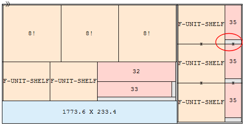 Recut only strips - the setting of 'multiple no restrictions' allows the optimisers to produce (where these are necessary) 'Recut only' strips. These are strips where the width of the strip is not defined by any of parts (all the parts in the strip are recut).