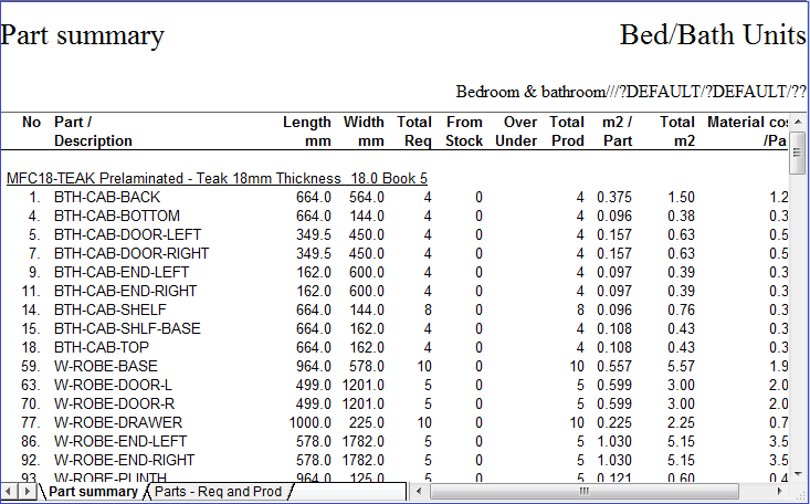 The report shows parts produced including any under or over production and the cost per part. If there is a mixture of materials the summary is sorted by material code.