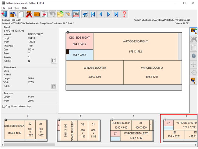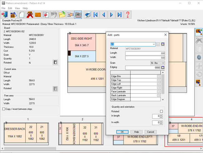 - Waste percentages, totals, part costs and the off-cut summary are all regenerated after amendments have been made.