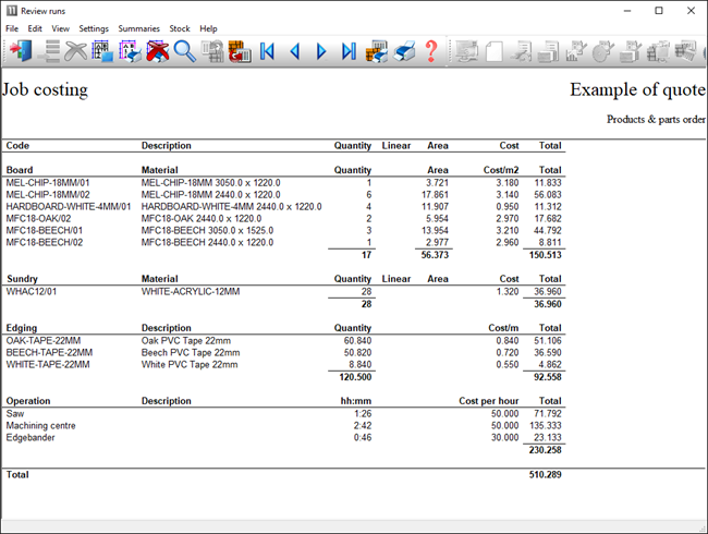 - You can obtain a picking list with the calculation of sundry part sizes such as solid lipping or bought-out items.